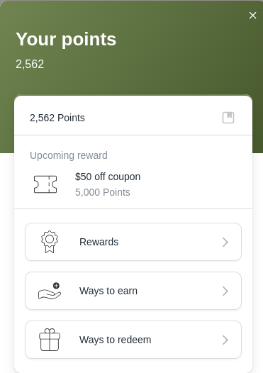 Access your rewards with ease using the green rewards widget in the bottom corner of the page. From here, you can: